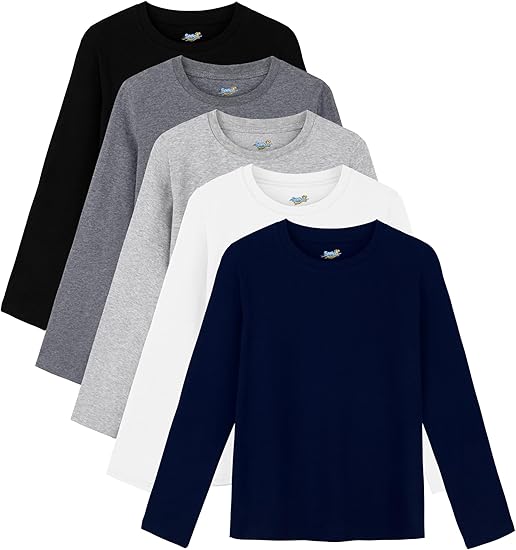 Semois 5 Pack Boys Long Sleeve Shirts Boys’ Cotton Crew Neck Basic Tees Soft Kids’ Long Sleeve T-Shirts Top
