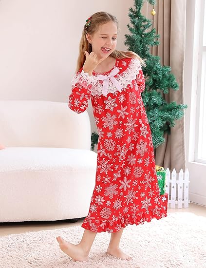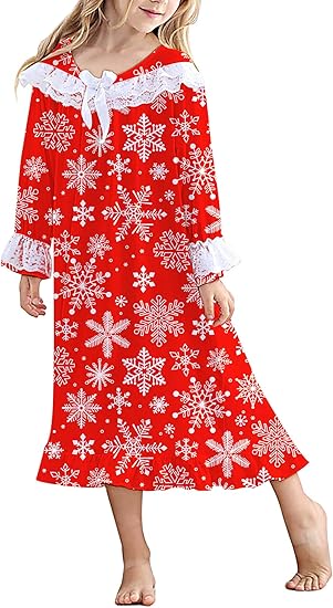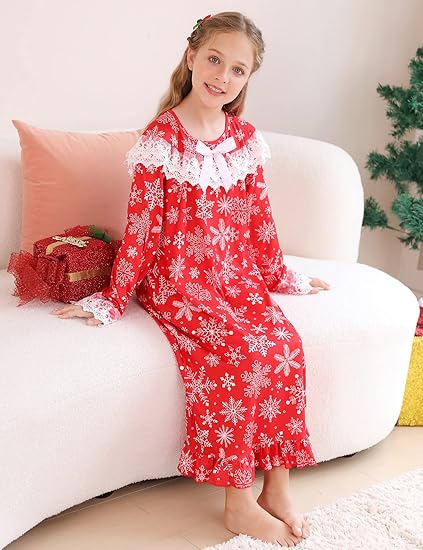 uideazone Girl Nightgowns Lace Print Sleepwear Lightweight Nightdress Soft Princess Pajamas Dress 4-12 Years